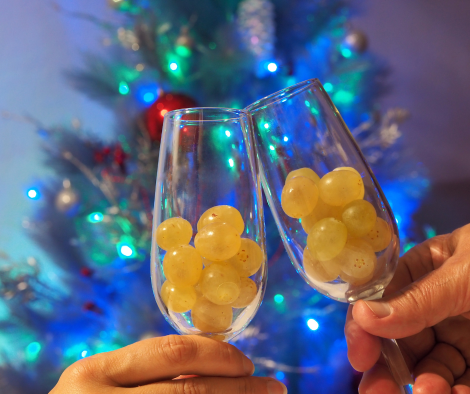 En Espagne, le passage à la nouvelle année est rythmé par une tradition gourmande : manger douze raisins au rythme des douze coups de minuit. Chaque grain symbolise un mois à venir, et les avaler à temps porte chance. Cette coutume, las doce uvas de la suerte, est partagée en famille ou sur les places publiques, dans une ambiance festive et rieuse. De Madrid à Séville, c’est un moment incontournable.