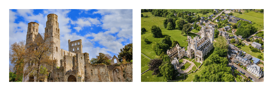 Un joyau romantique en Normandie ! Surnommée “la plus belle ruine de France”, l’abbaye de Jumièges impressionne par ses dimensions et son atmosphère poétique. Nichée dans une boucle de la Seine, elle offre un cadre verdoyant idéal pour une balade. Le contraste entre les pierres blanches et la nature environnante crée un décor unique.